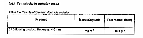 Result: Result: 0.004 mg/m³ (Complies with E1 formaldehyde emission standard ≤ 0.124 mg/m³)