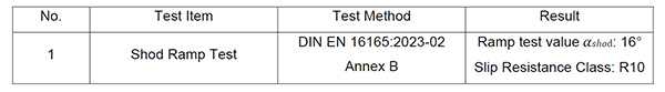 Result: Slip Resistance Class R10 (suitable for kitchens, corridors, and shops)